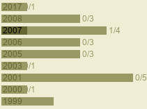 das Lied "stripy" wurde im Jahr 2006 auf 0 von 3 Konzerten gespielt